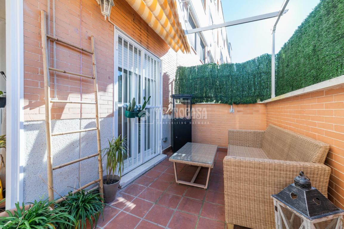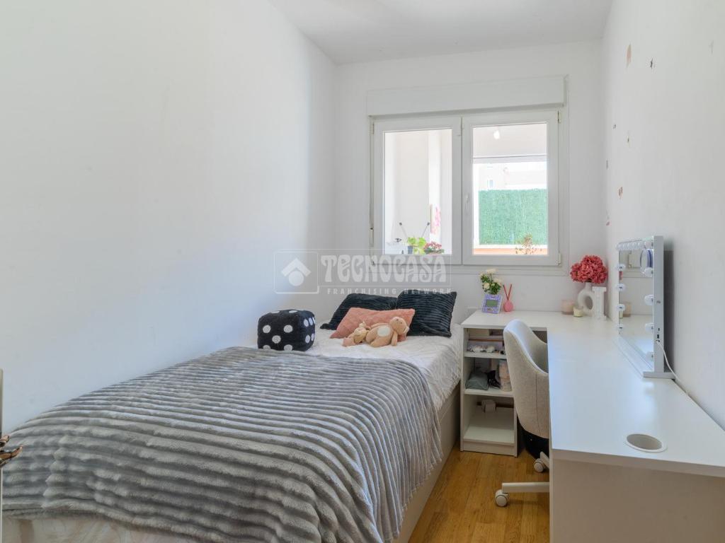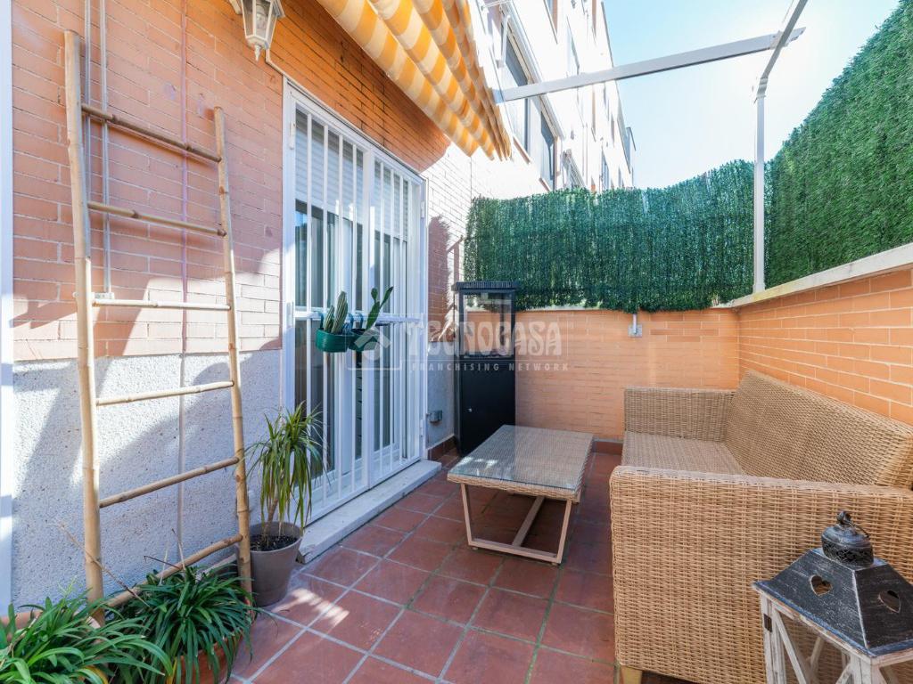 Imagina relajarte en el patio privado o disfrutar de las zonas comunes, que incluyen una refrescante piscina y hermosos jardines. Además, contarás con una plaza de garaje incluida en el precio, lo que te facilitará la vida diaria. La urbanización está rodeada de todos los servicios necesarios: supermercados, colegios y transporte público, todo a un paso.
